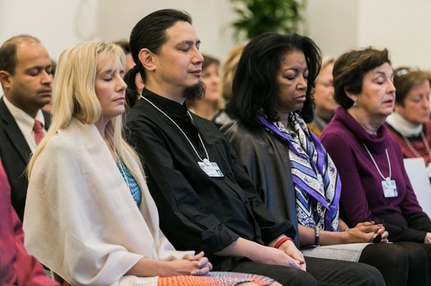Photo: Mindfulness practice at the World Economic Forum in Switzerland in 2015. Credit: Benedikt von Loebell