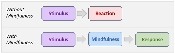 - Mindfulness gives us space to recognize and consider options for response instead of reacting out of habit, therefore helping us make responsible decisions.